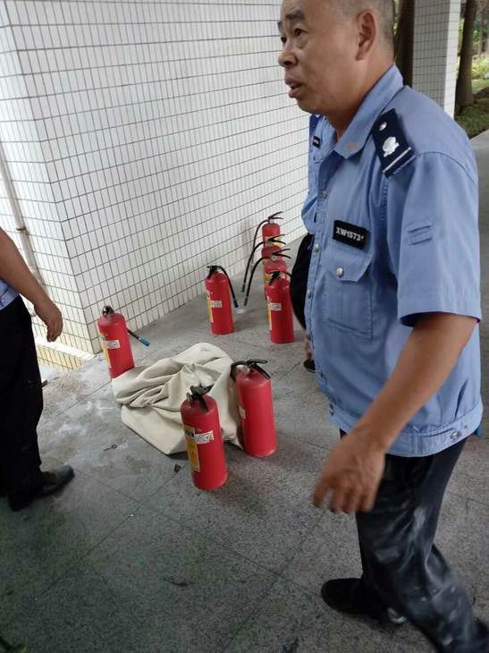 保卫处校卫队员林晓明在北教学楼巡逻时发现校友办学生助理活动中心冒出浓烟,敲敲房门无人应答。在这紧急情况下,林晓明马上报告当值班长和保卫处消防科。消防科立即赶赴现场并组织队员灭火,利用灭火器砸破房间窗户,从窗户中喷射干粉灭火剂,起火部位火势得到有效控制,很快被扑灭。因发现及时和灭火措施有效,火灾过火面积不到一平方,事故没造成人员伤亡及严重的财产损失。